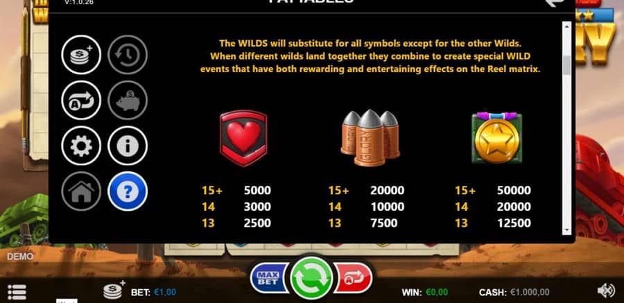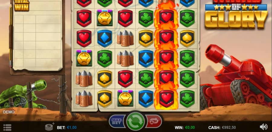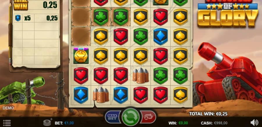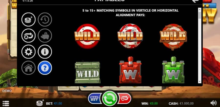 Танки славы — видеослот от компании Tanks of славы.. Этот онлайн-слот с фильмами дает вам возможность отправиться на популярные поля сражений, где края переживают безумные сражения.. Вы будете иметь дело и будете сражаться с современными и футуристическими танками, а также с другим снаряжением вооруженных сил против суровых противников..