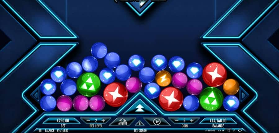 Techno Tumble заимствует дизайн из онлайн-игры в пинбол, добавляя в ваши процедуры умный научно-фантастический штрих.. Установить внутри космического корабля, символы, как правило, представляют собой разноцветные светящиеся шары (фиолетовый, зеленый, синий, лайм, и фиолетовый) которые падают к основанию дисплея и образуют кластеры. Вы можете легко приземлиться между 15 и 45 шары за раз. При условии эквивалентного касания мячей, вы получите компенсацию. Обычно, большее количество символов, которые могут быть связаны с выигрышной комбинацией, тем лучше преимущества, которые вы получите. Минимальное количество совпадающих связанных символов, необходимое для выигрыша, составляет 5.