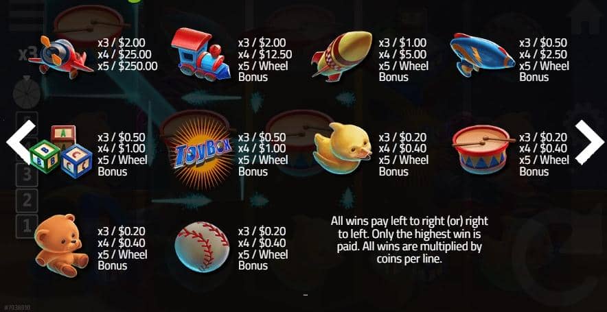 Контейнер для игрушек для видеослотов от поставщика онлайн-игр Concept Gaming — это 5*3 игра с 20 ставки. Особенности слота RTP=95% и MED(?) градусная дисперсия. Основные особенности игры, как правило,: сумасшедший, Множитель, Джекпот, Особенность: Символы замены, добавлено бонусное колесо, 3Д, Бонусные знаки.