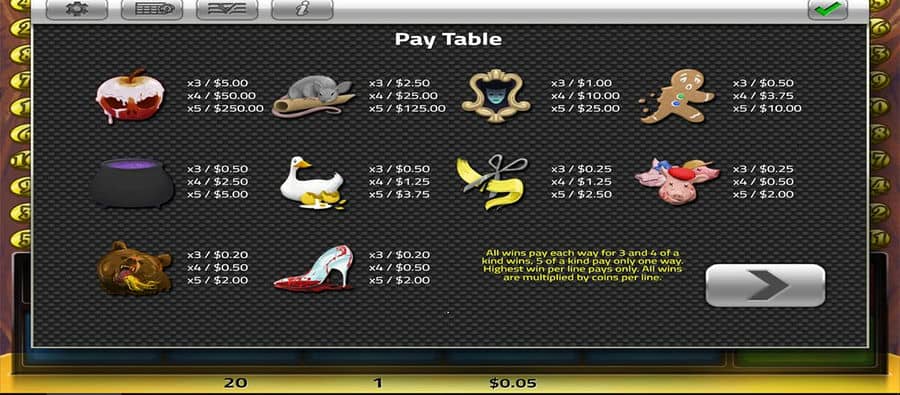 Видео-слот Twisted Fairytales от игрового провайдера Concept Gaming – это 5*3 онлайн игра с 20 ставки. Слот имеет RTP = 98,1% и разницу в сумме нет.. Основные функции онлайн-игр, как правило,: сумасшедший, поощрительная игра, Множитель, Знаки разброса.