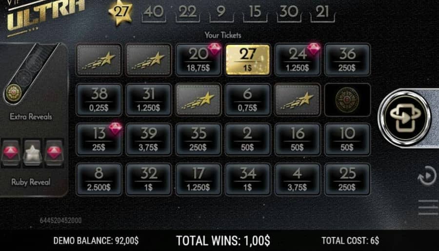 VIP Ultra основан на быстрых действиях, чтобы соответствовать числам. Просто и легко элегантно, В VIP Ultra весело играть. Человек выберет счет за нарушение и широкий выбор мест, это вызовет приз, если цифры подходят. Кроме того, 3 знаки монет должны быть показаны на пропуске, чтобы разблокировать дополнительный бонус шоу.