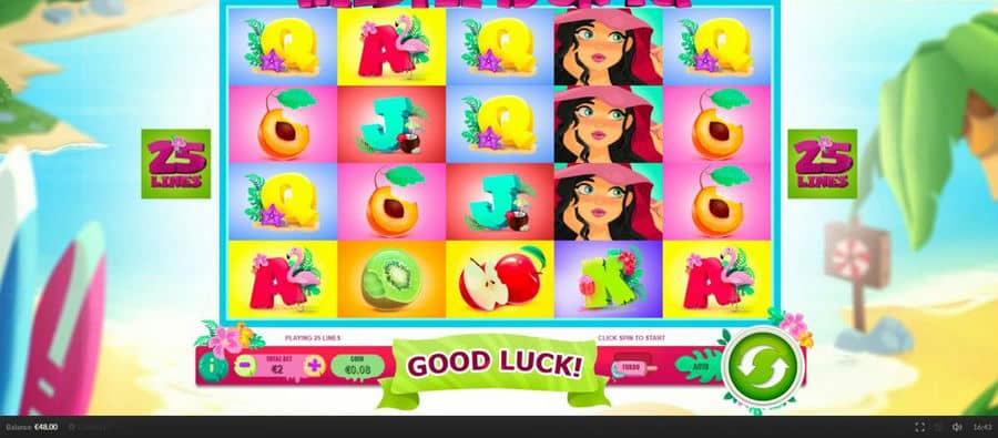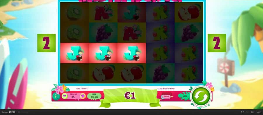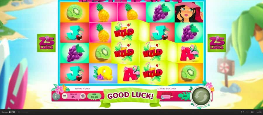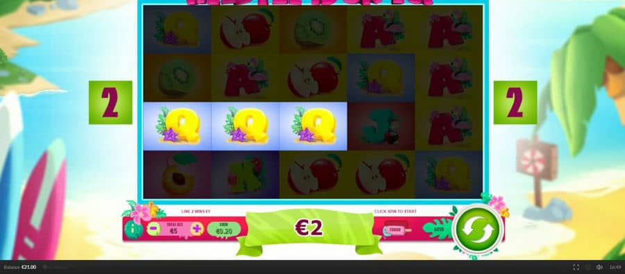 Crazy Flips over the top slot создан командой Skywind в летней пляжной тематике.. На игровом поле имеется 5*4 сетка с 40 линии выплат. Максимальная отдача возможна при сборе 5 ананасы или 5 апельсины.