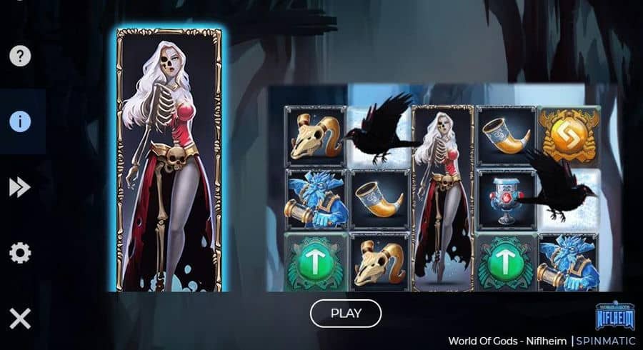 Царство богов: Niflheim movie Slot – веселая онлайн-игра с мрачным мотивом богов.. 5×3 на детской площадке изображены различные амулеты, миски с травами, женский скелет и различная мистическая атрибутика.