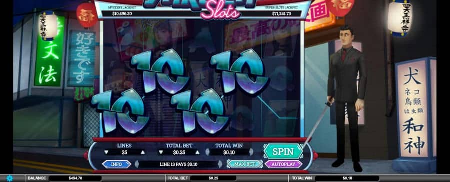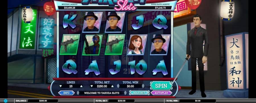 Вы можете не только выиграть несколько крупных регулярных розыгрышей, играя в слот Yakuza, но и разделить два прогрессивных джекпота., Тайный джекпот, а также джекпот Super Slots. Джекпот Mystery выигрывается, как только он выпадает $10,000 так что продолжайте играть, чтобы получить хорошие шансы на победу. Джекпот Super Slots — это гораздо больший джекпот, и его обычно требуют, когда он стоит около $45,000.